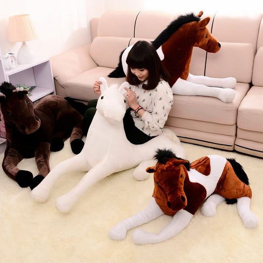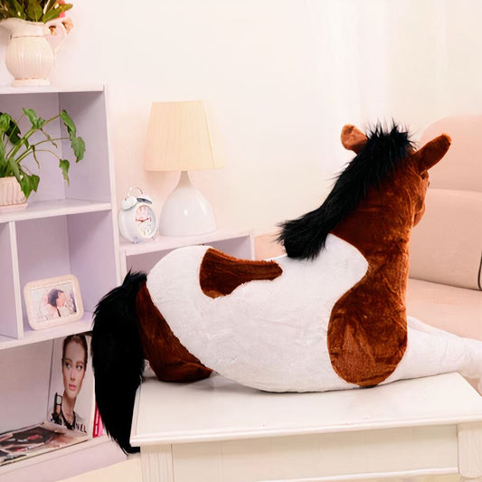 Peluche Cheval Doux Marron Blanc - Câlin Idéal Pour Enfants