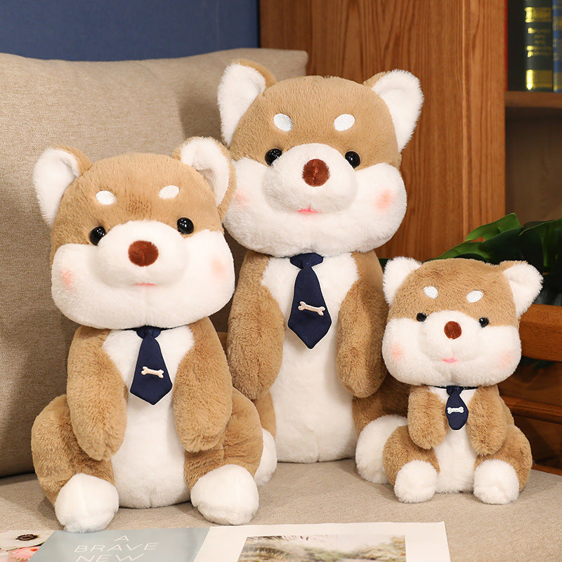 Adoptez dès maintenant un compagnon fidèle : la peluche Chien Shiba avec Cravate Os